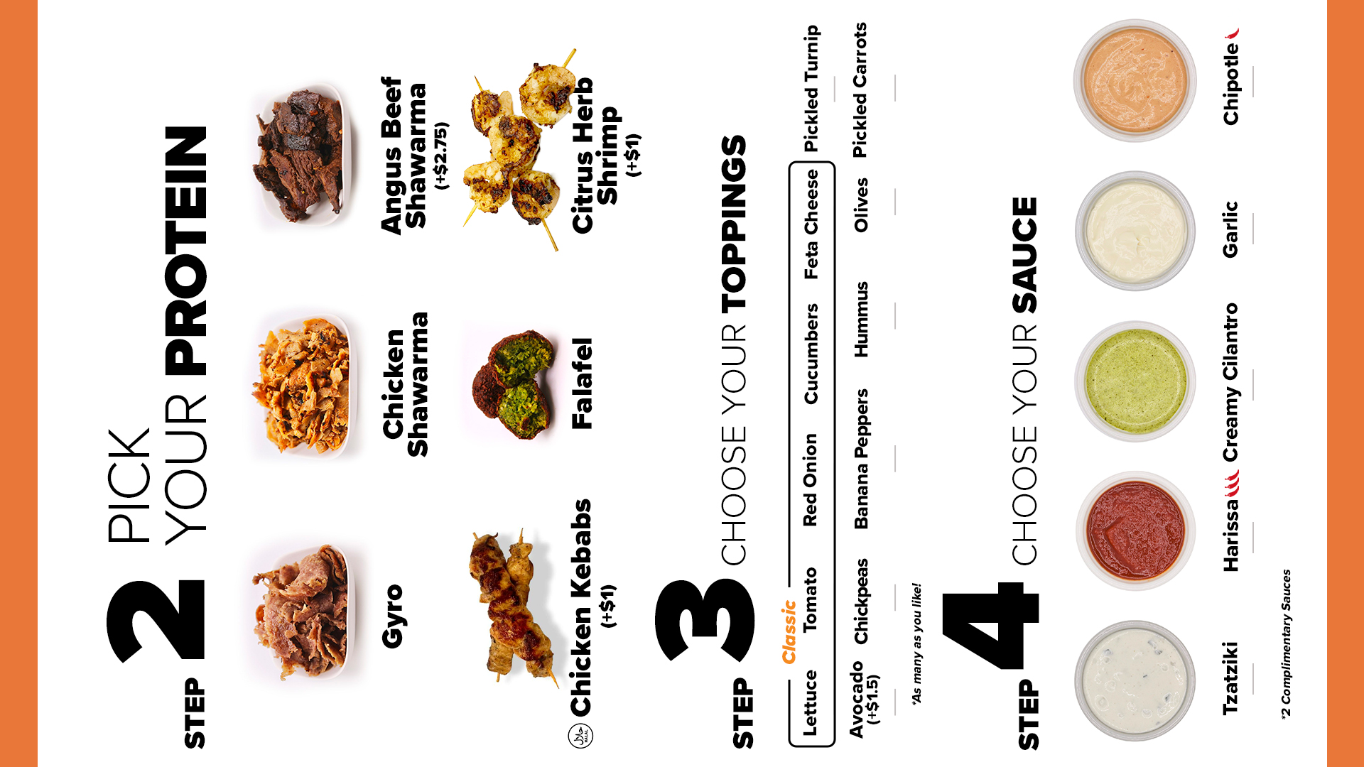 Protein, Toppings, Sauces